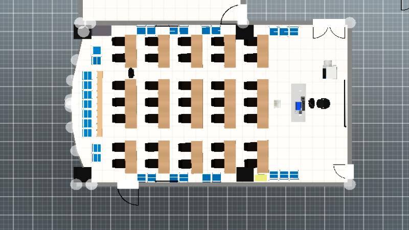 有做天花板,老师不挡投影。35人学生座位,加老师位可供36人考试。